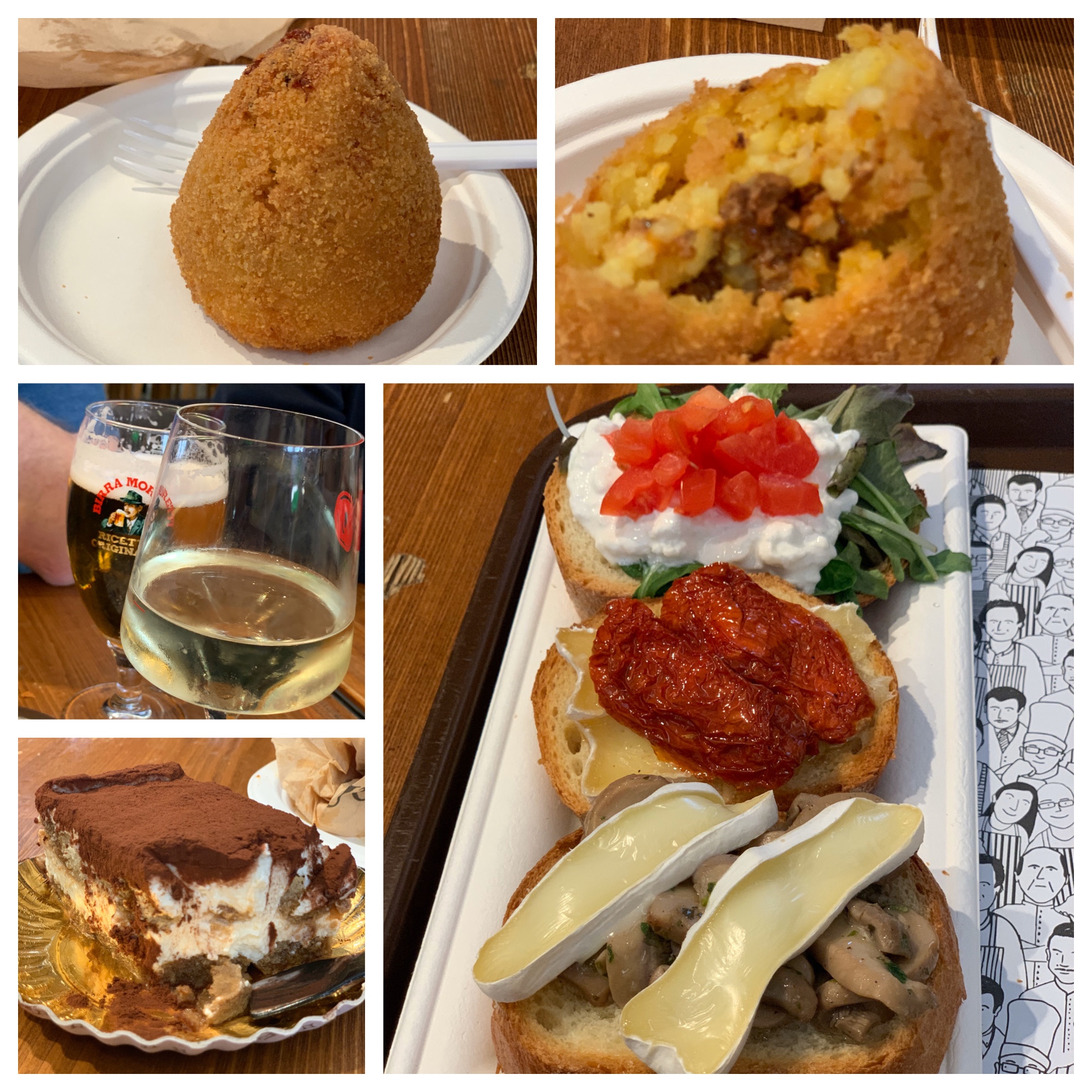 We missed this on our last trip because we didn’t even know about it. The lower floor is a market and the upper floor is an overwhelming experience of gastronomical delights. We wandered through both floors and finished with some bruschetta, arancini with ragu inside and of course a refreshing beverage🍷🍺